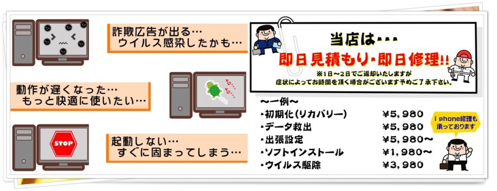 リカバリ(初期化)メーカーリカバリがある場合OS/HDD代は別料金¥5,980
